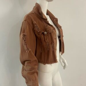 Distressed design denim cropped jacket.