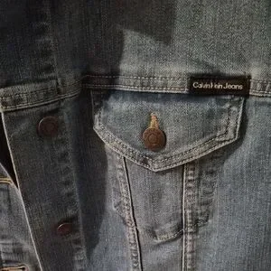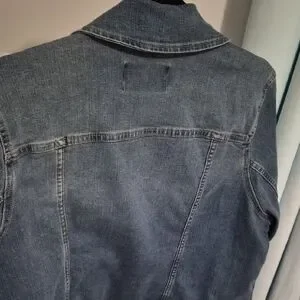Casual denim jacket with button front. Chest flap pockets and classic collar. Subtle faded wash for a lived-in look. Easy layering piece. Fits more like an XL, falls really nicely.