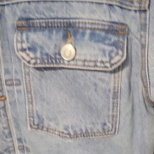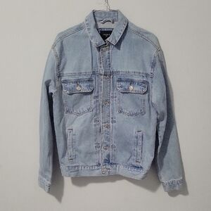 Stylish denim jacket in a classic light blue shade. Perfect for casual outings and versatile styling.
