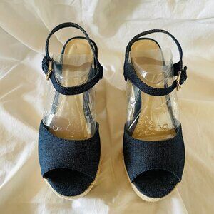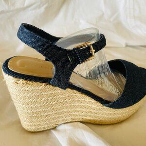 Denim Jute Wedge Ankle Strap Open Toe Espadrille Sandals