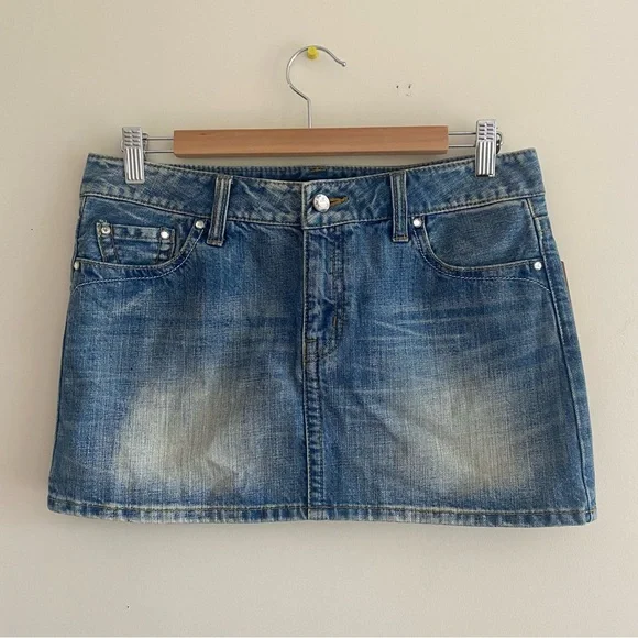 Denim Low Rise Micro Mini Skirt