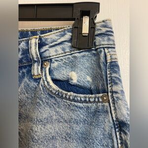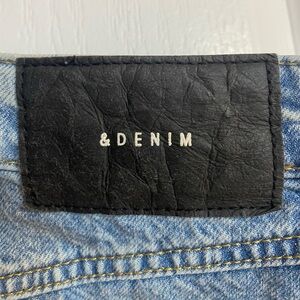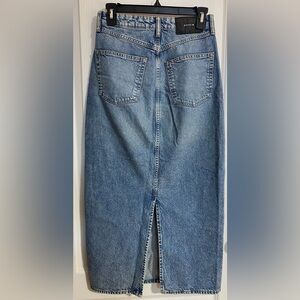 &Denim Midi Distressed Zippered Back Slit Hippie Boho Summer Blue Jean Skirt