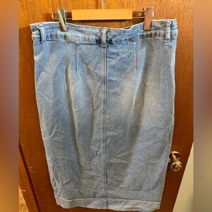 EUC denim midi skirt. Button fly with button detailing. Lots of stretch - not a stiff denim.