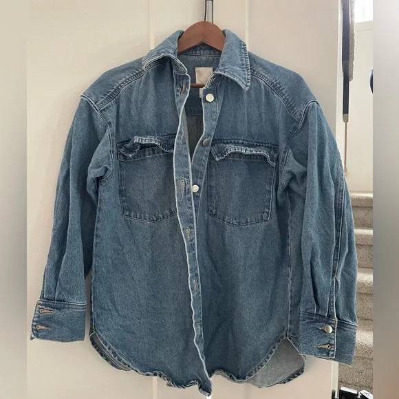 Comfy, oversized denim shacket. Great for a coat for cooler days and as a transition piece. A closet staple but I have too many jacket and need to purge.