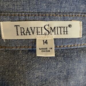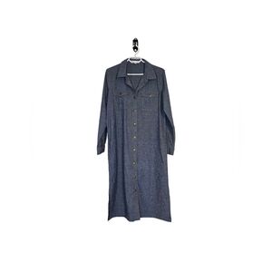 Denim Shirt Dress Size 14 Western Cowgirl Pockets Lagenlook Spring Neutral Brand Travel Smith Pit to pit 22" Sleeve 24" Length 48"