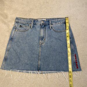 Denim Skirt CALVIN KLEIN JEANS Women's W27 4 Small Frayed Hem Light Wash Logo