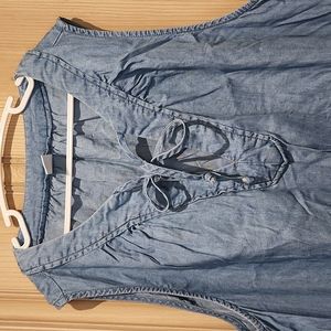 Denim V neck with tie
