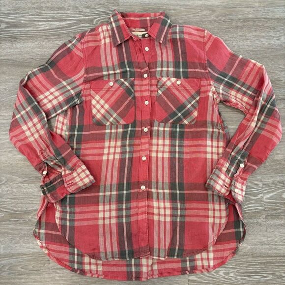 Denim & Supply Ralph Lauren Al Utility Womens Check Print Shirt Linen Pink S