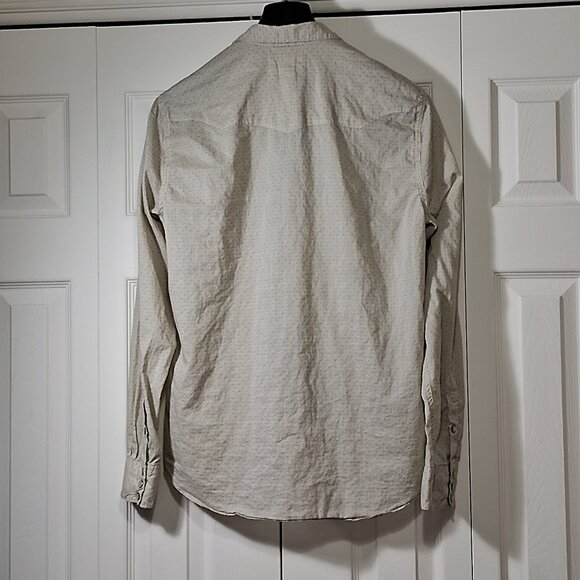 Men's Denim & Supply Ralph Lauren shirt with pearl-embellished snaps. Side chest pockets and a fabric label with the Denim & Supply Ralph Lauren Company, Ralph Lauren Clothing Co. Series.