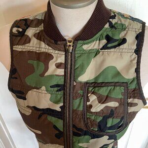 Denim & Supply Ralph Lauren Camo Distressed American Flag Quilted Vest