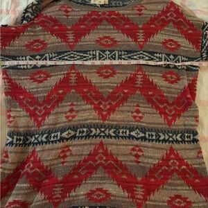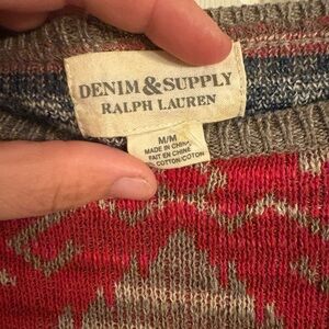 Denim & Supply Ralph Lauren Red and Tan Crew Neck Sweater