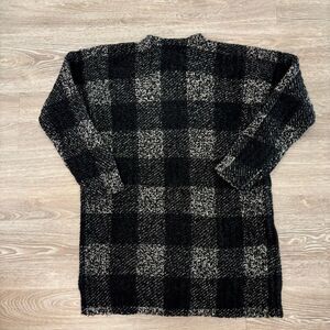 Oversized long sweater in plaid gray black print.