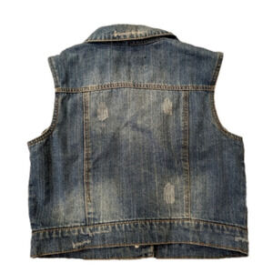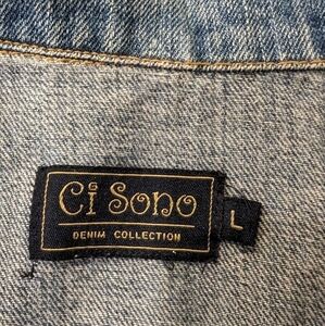 Ci Sono denim vest, distressed, women's size L. In pre loved condition. Inner pockets have wear and some discoloration- pictured