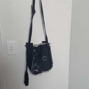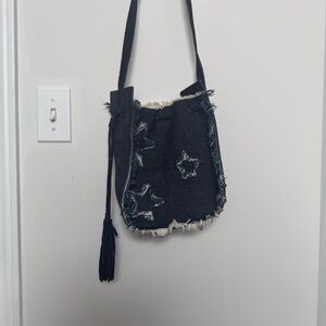 Denim & genuine leather Stylish Fringe Shoulder Bag y2k stars coastal cowgirl