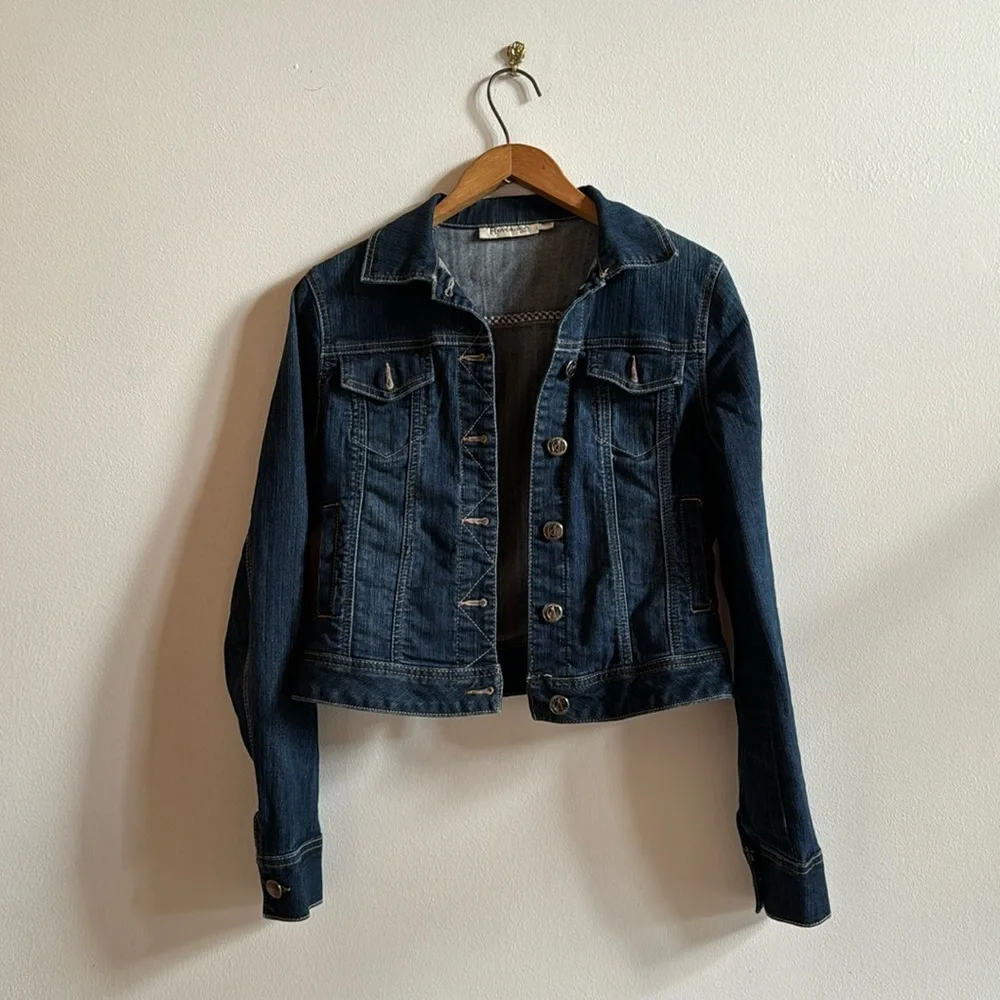 Revolution by Ricki’s GUC. Cotton polyester blend with lots of stretch. Small pull on back of one of the sleeves. Not visible when wearing. Shown in photo. Perfect staple wardrobe piece for the summer. Everyone needs a little denim jacket to wear over dresses.