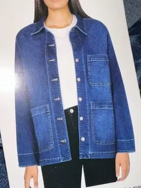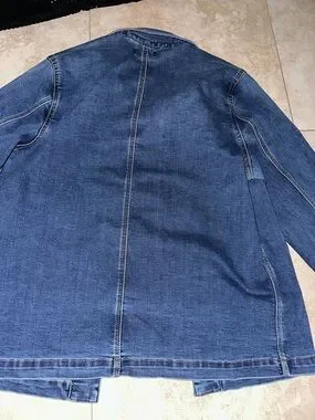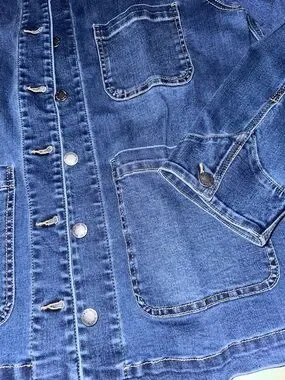 Blue denim jacket. Button down. 3 pockets. Boxy oversized fit.