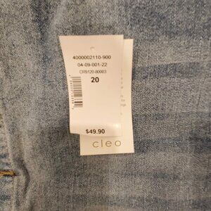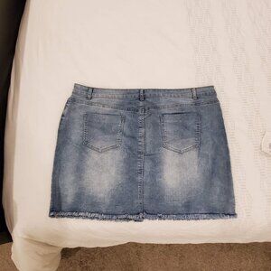 Brand new with tags Cleo denim jean skirt. Short - above the knee. Button closures up front, fringe hem, 5 pocket. Size 20, never worn.