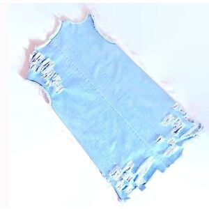 Denim jeans dress distressed mini sleeveless,