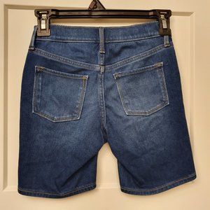 Denim shorts with real button and zipper closure. Faux front pockets, real back pockets. Adjustable waist. Excellent condition.