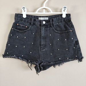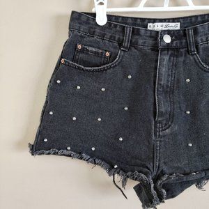 Denim&Co High Waist Cut Off Studded Denim Shorts