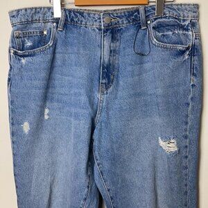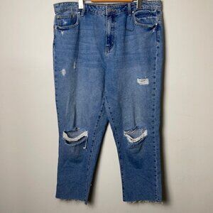 DenimCo Distressed Raw Hem Mom Jeans Size 14 Preowned Condition Stock photo only use for example of fit