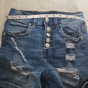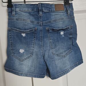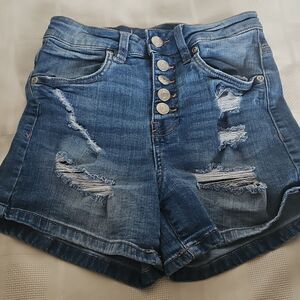 Stylish denim distressed shorts perfect for casual outings. Features a classic blue color and a comfortable fit.