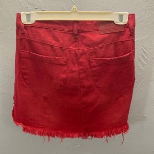 Brand new never worn! Tags were just taken off. FITS LARGE, Model has 25 inch waist and still is a little big, but would be fine with a belt. Skirt is higher in the front than the back and good denim!