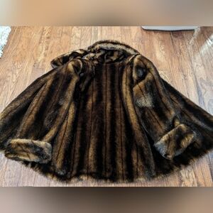 Designer Dennis Basso vintage, Faux Fur Coat - Size small- one owner, worn twice. This brown and black Mink fur cropped coat with 3/4 length sleeves, is in pristine condition. The lining and outer coat have no flaws. The