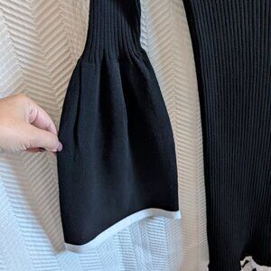 Denny Rose Black & White Ribbed Knit Dress Size L Bell Sleeves Ruffle Hem