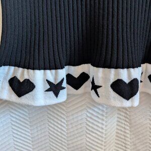 🖤 Sweet meets statement in this Denny Rose black ribbed knit dress, featuring dramatic bell sleeves and a playful ruffle hem printed with hearts and stars. The stretchy knit hugs in all the right places while keeping things comfy and chic. Perfect for date nights, gallery strolls, or adding a little flair to your fall wardrobe.