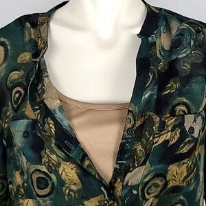 Denver Hayes 2 Piece Abstract Green Tan Floral Semi Sheer Blouse Size Small
