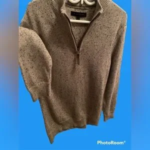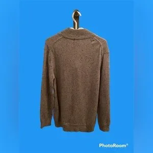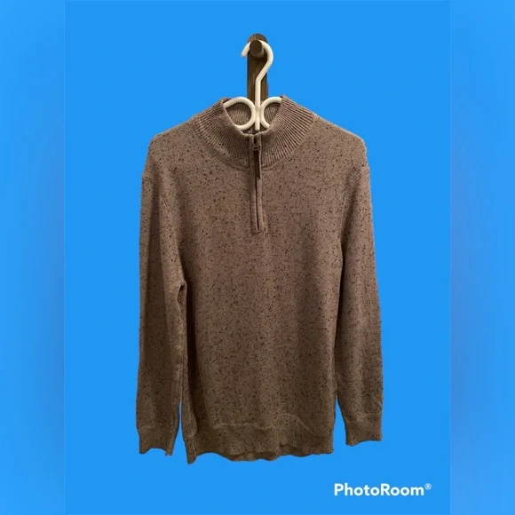 Men long sleeved sweater. Pullover with quarter front zip. Ribbed neckline and hem finishing. Material has different material in it so it has a textured finish look. Good amount of stretch, gently used and in good condition. Pit to pit measures 21”, length measures 29”.