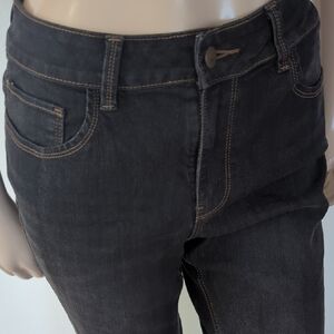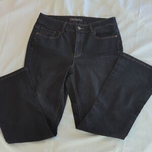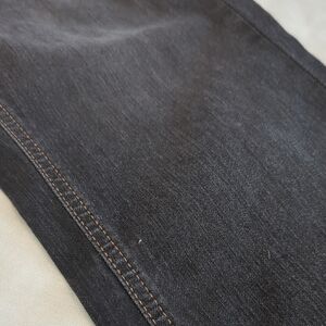 These black jeans showcase a fashionable flare and wide leg design, perfect for a trendy look. Crafted from medium weight denim, they offer a clean and uniform appearance without any distressing. The mid-rise waist ensures a comfortable fit for various occasions.