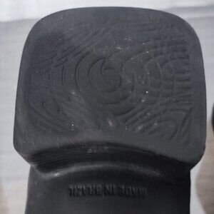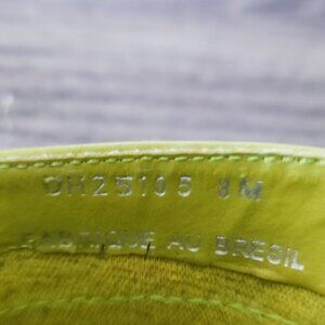 FEATURES/ACCENTS: 2" High Block Heel. Open toe. Solid green colour. Slip on style. Made in Brazil