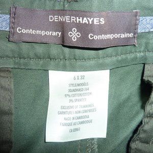 I have a brand new pair of Denver Hayes ladies green khaki casual pants in cotton/stretch chinos style. Size 6 and 32 inch leg. GREAT EVERYDAY PANTS THAT YOU'LL GET TONS OF MILEAGE OUT OF!! BRAND NEW!!