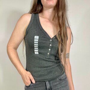 *Denver Hayes Charcoal Heather V Neck Henley Tank NWT