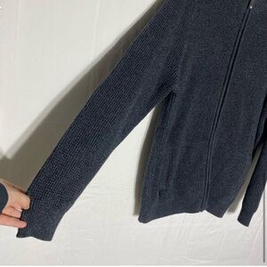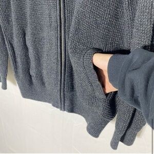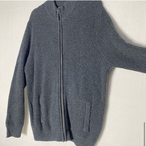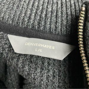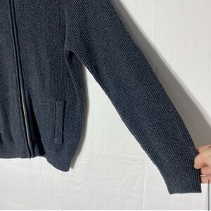 Denver Hayes Dark Grey Waffle Knit Full Zip Mock Neck Cardigan Sweater L