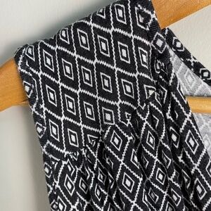 Denver Hayes Geometric Black & White Sleeveless Midi Dress X-Large + Waist Tie