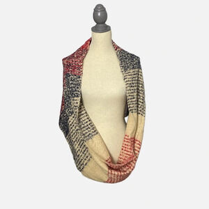 Denver Hayes Infinity Scarf NWT Camel Red Blue Knit Acrylic Cozy Fall