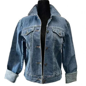 Denver Hayes Jean Jacket Classic Denim Trucker Cropped Dark Blue XS