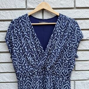 Stretch knit jersey dress, lined in top half. Midi length. Faux wrap , v-neck look with short sleeves. Defined waistband with good stretch. In excellent condition, no marks or damage to note.