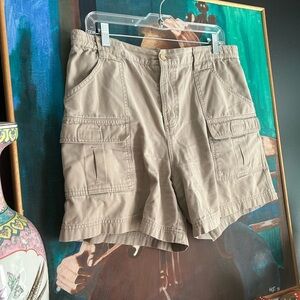 Stylish khaki shorts with multiple pockets. Ideal for everyday wear. Waist 34" Rise 12"