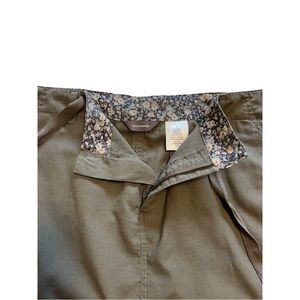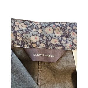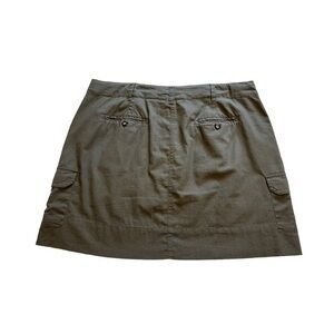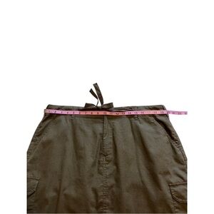 Denver Hayes Linen and cotton blend cargo skirt. Has a button and zipper, and also a drawstring tie. Nice khaki green colour, perfect addition to your wardrobe!