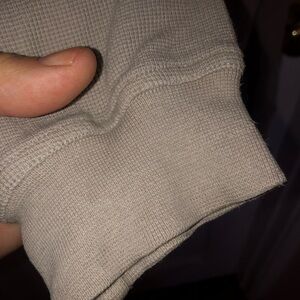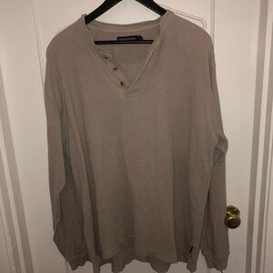 Stylish Henley with buttoned front. Soft fabric and long sleeves.soft grey, like new or new. Great for work or play, casual or office. Size large. Check pics please.