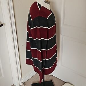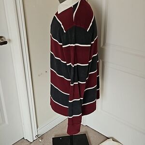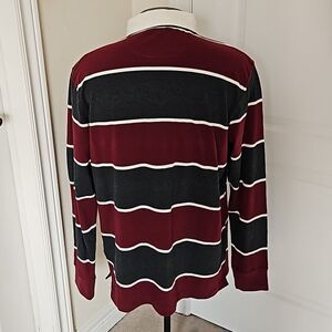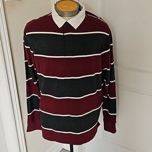 Denver Hayes Men's Polo Long Sleeves Cotton Shirt Large Burgundy/White LG