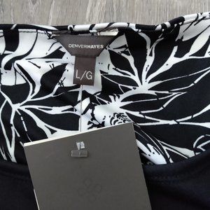 Denver Hayes Mid-Length Dress Black & White Short Sleeve NWT Size Large