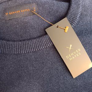 Denver Hayes NWT Crew Neck Minimalist Knit Sweater Pullover Lightweight Navy Blue Men's Size Large