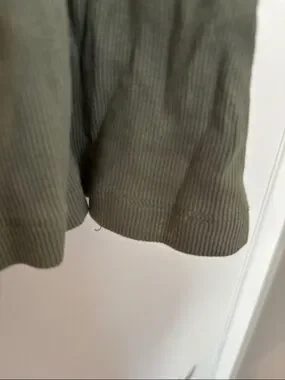 Soft ribbed tank with a relaxed silhouette. Sleeveless design for layering or warm days. Versatile olive green shade pairs well with neutrals. Lightweight and casual for everyday wear.