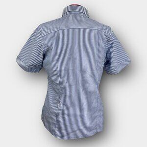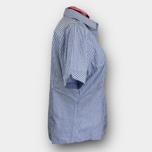 Denver Hayes Pin-Stripe Stretch Blouse XL Blue / White Short-Sleeve Button Front