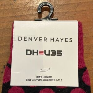 Add a pop of color to your wardrobe with these Denver Hayes men's socks. Featuring a playful polka dot design in black, blue, and pink, these socks offer both comfort and style. Perfect for any occasion.